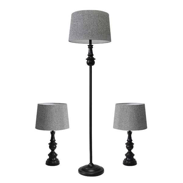 21 .5 in. Industrial Black Lamp Set with Night Lights and USB Ports