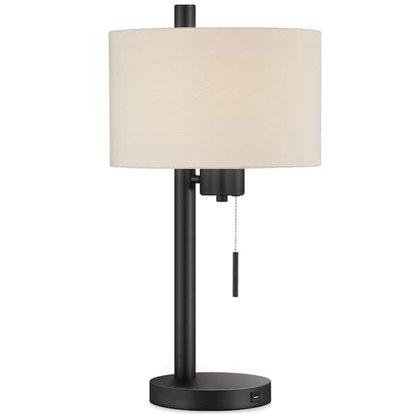 23 in. Black Modern Table Lamp with USB Port and White Linen Shade
