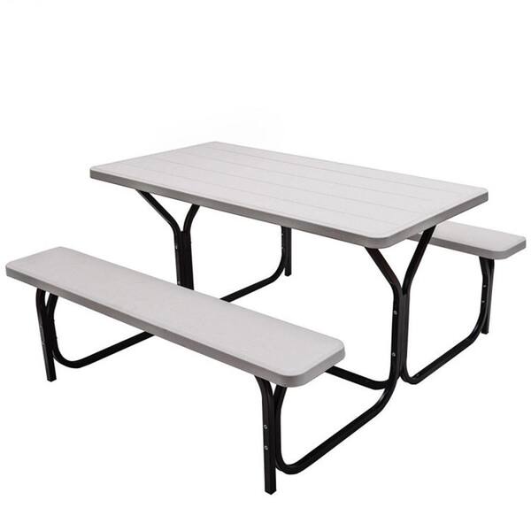 54 in. L x 59 in. W White Outdoor All Weather Metal Picnic Table Bench Set with Base Wood for 4-People