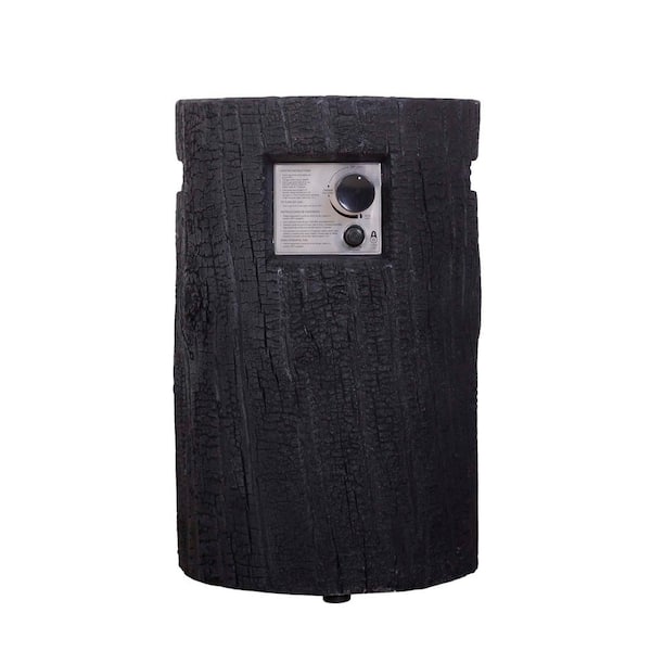 Black Round Stone Fire Pit Table with Waterproof Cover