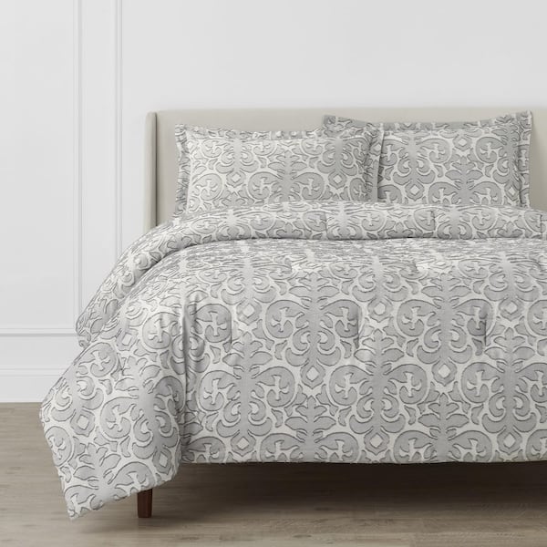 Averly 3-Piece Gray Clipped Jacquard King Comforter Set