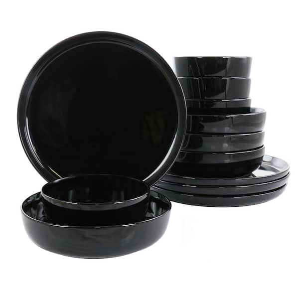 Avisala 12-Piece Black Fine Ceramic Dinnerware Set