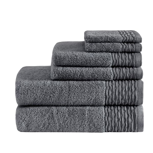 Aer 6-Piece Charcoal Cotton Bath Towel Set Jacquard Wavy Border Zero Twist Antimicrobial