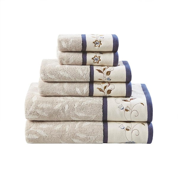 Belle 6-Piece Navy Embroidered Jacquard Cotton Bath Towel Set