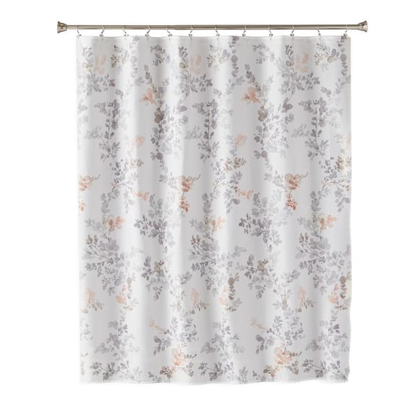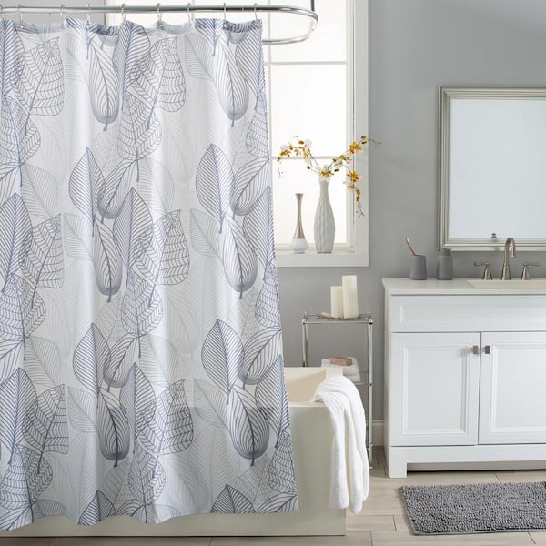 71 x 71 in. White/Grey Leaves Polyester Shower Curtain