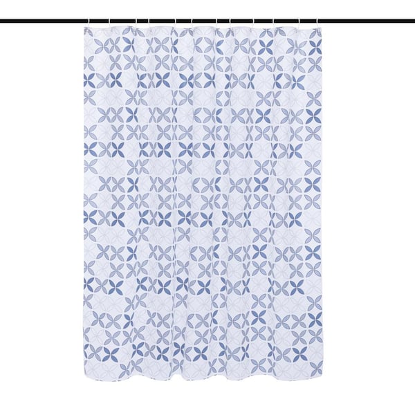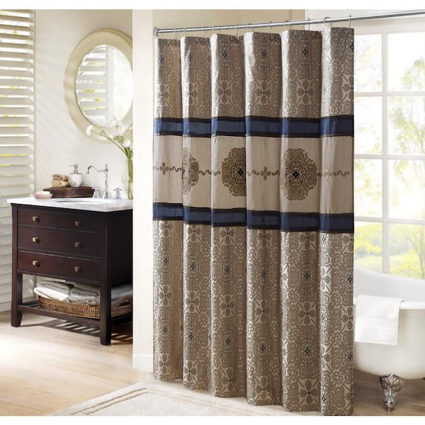 Blaine Navy 72 in. Embroidered Shower Curtain