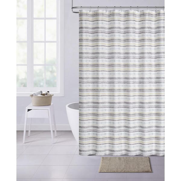 Jacquard Weave White 70 in. x 72 in. Shower Curtain