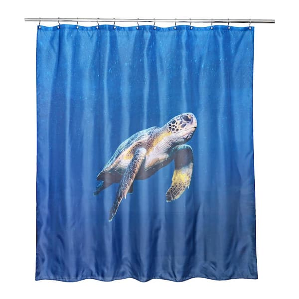 71 in. x 71 in. Navy/Gold/Aqua Sea Turtle Shower Curtain