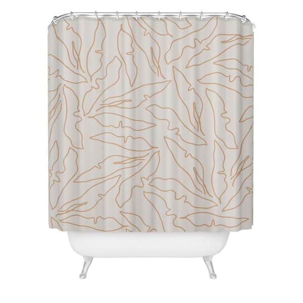 evamatise Banana Leaves Line Art Neutral Shower Curtain