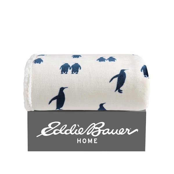 Ultra Plush Emperor Penguin Navy Sherpa Reverse Throw Blanket