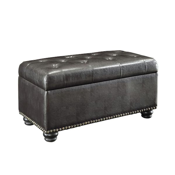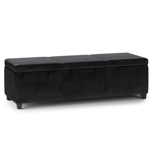 Avalon Midnight Black Extra Large Storage Ottoman Bench