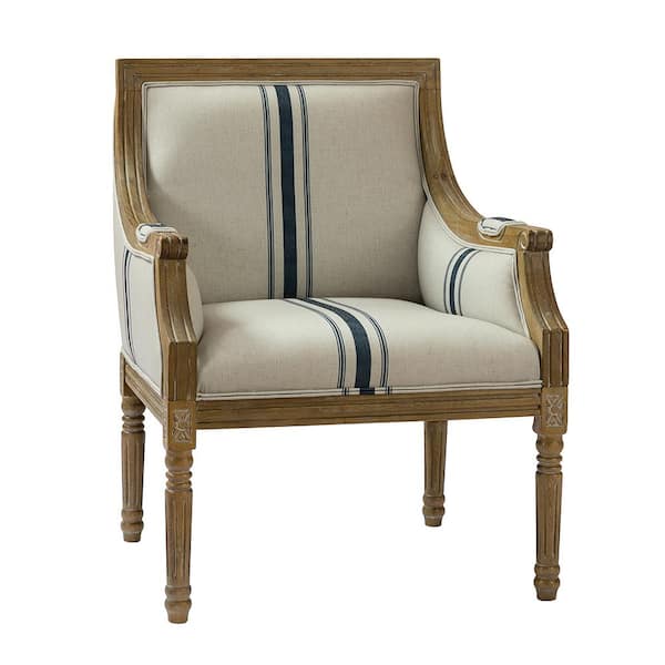 Mandan Navy Contemporary and Classic Upholstered Plaid Pattern Accent Armchair with Turned Solid Wood Legs
