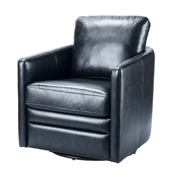Rosario Navy Vegan Leather Swivel Accent Chair with Cushion