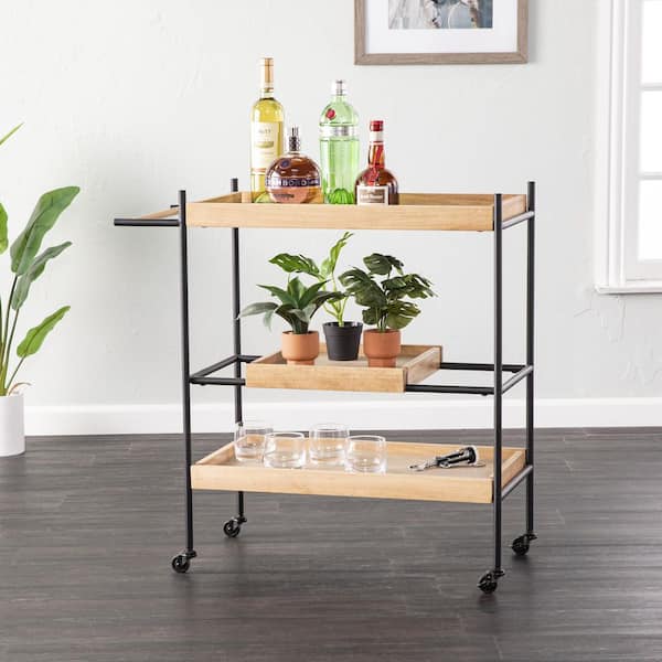 Claverdon Natural Black Bar Cart with Wheels