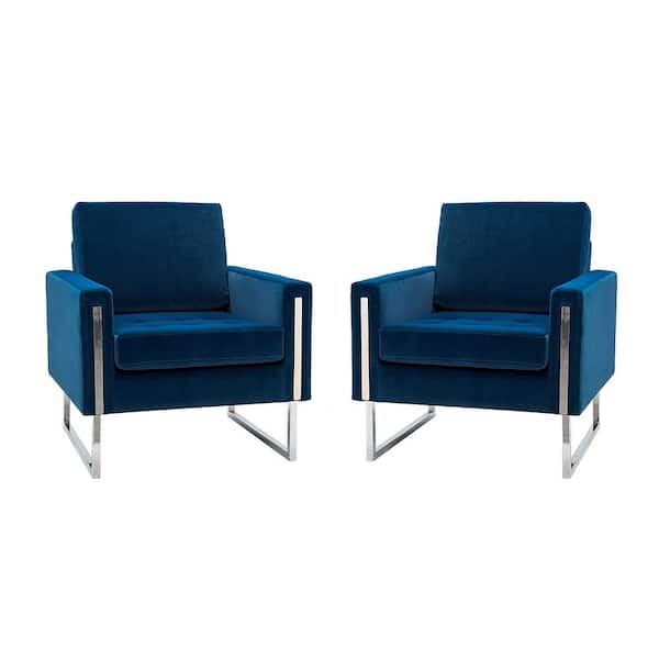 Brion Modern Navy Velvet Button Tufted Comfy Wingback Armchair with Metal Legs (Set of 2)