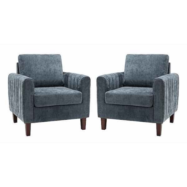 Ismenus Navy Upholstered Mid Century Modern Club Chair with Wood Legs (Set of 2)
