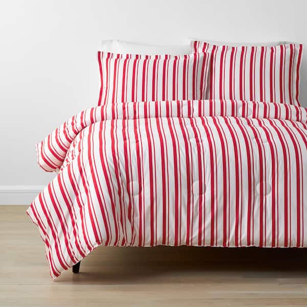Company Kids Stripe 2-Piece Red Organic Cotton Percale Twin Comforter Set