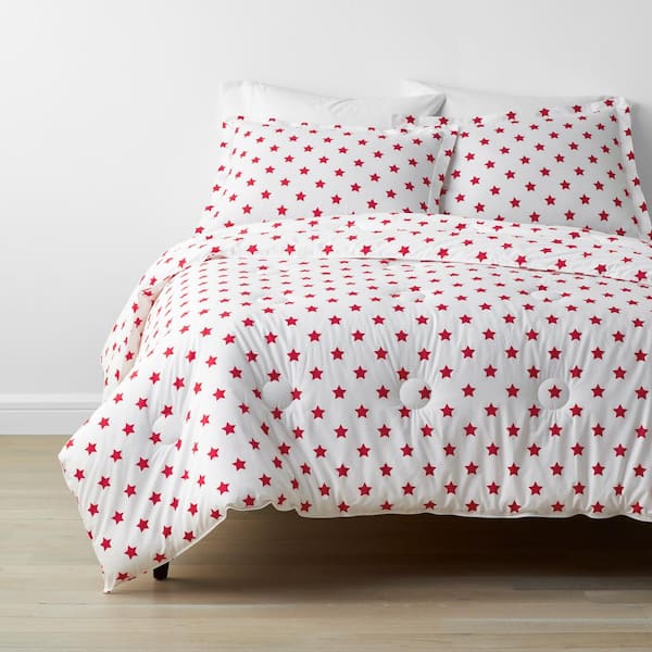 Company Kids Stars 3-Piece Red Organic Cotton Percale Full Comforter Set