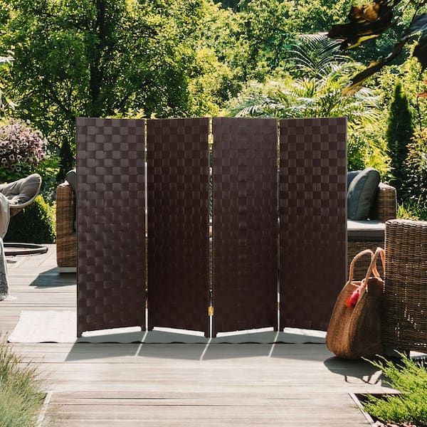 4 ft. Short Woven Fiber Outdoor All Weather Folding Screen - 4 Panel - Dark Brown