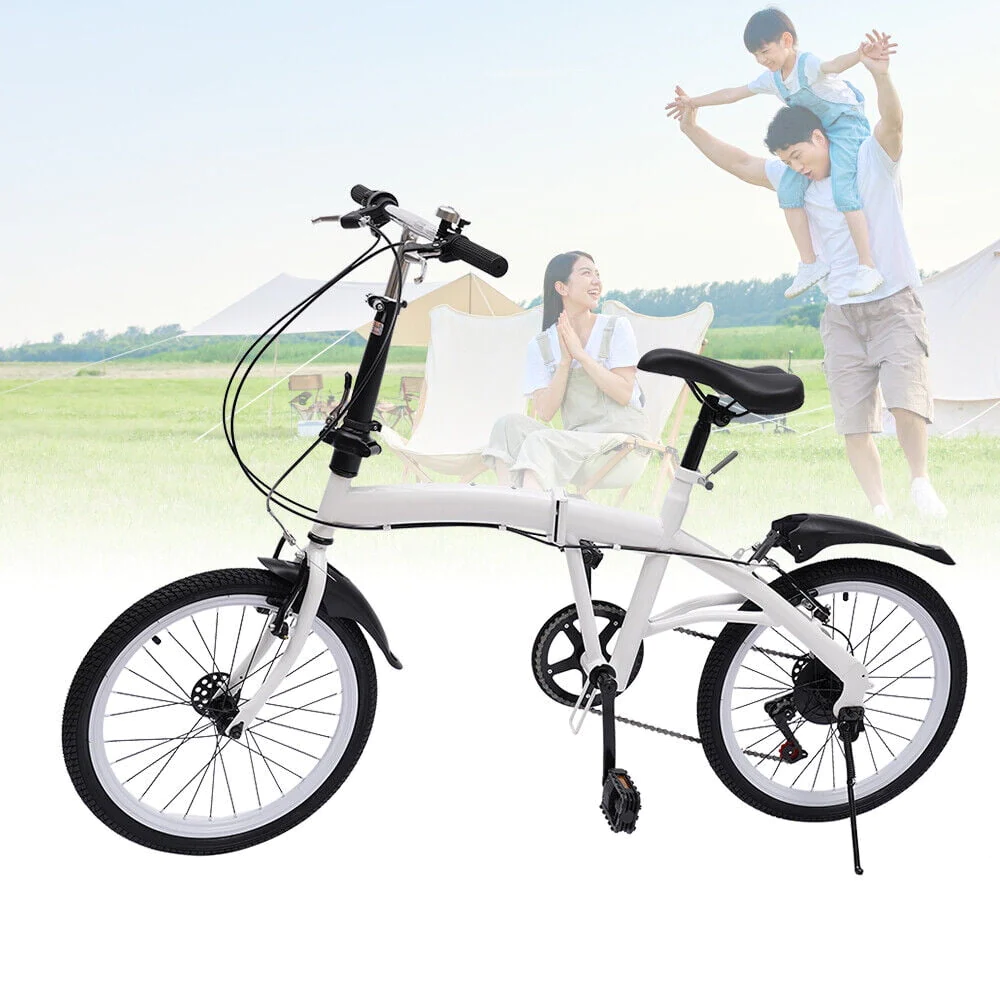 20-inch Adult Folding Bike Lightweight Bicycle 7 Speed Men Women Cycling White
