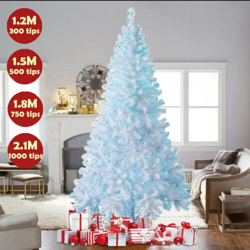 t White Christmas Tree Bushy With Blue LED Lights Pine Decor US