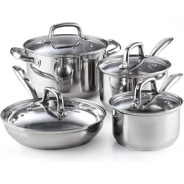 8-Piece Stainless Steel Cookware Set in Silver