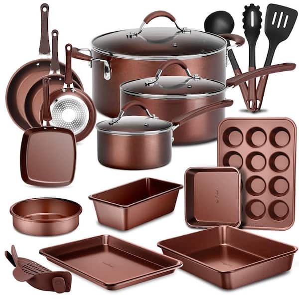 20 Piece Aluminum Nonstick Cookware Set in Brown