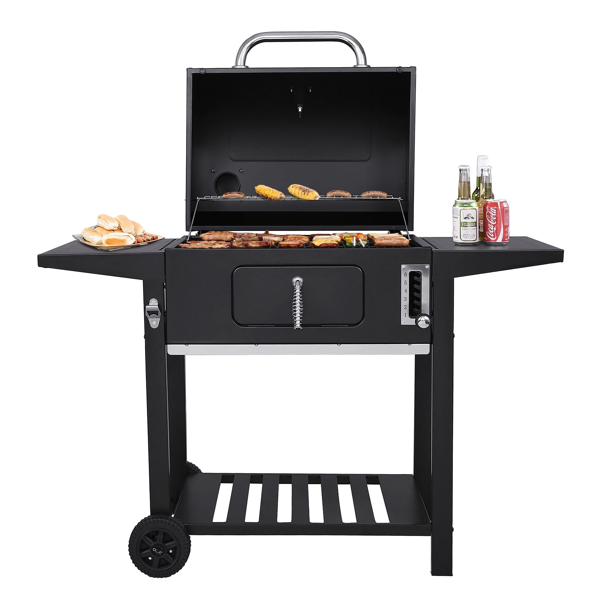 Outdoor Portable BBQ Charcoal Grill with Offset Smoker, Black