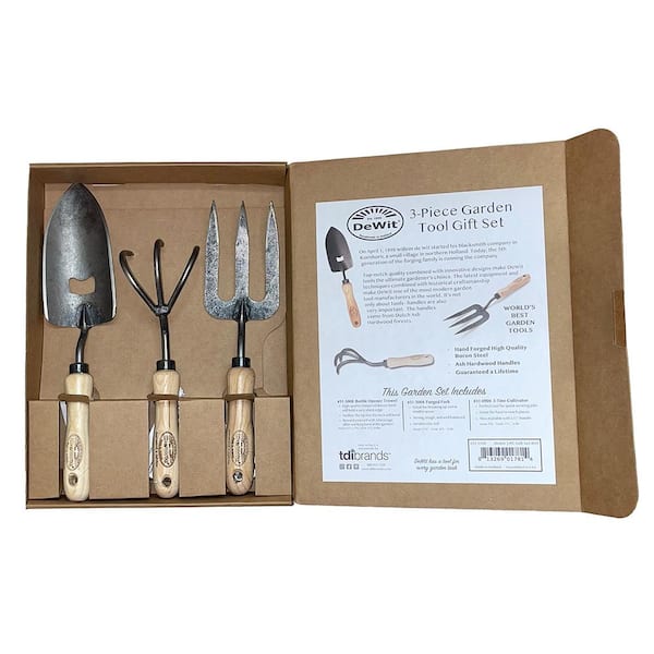 3-Piece Garden Tool Set for Dad, 12 in. L Bottle Opener Trowel, 10.8 in. L Hand Fork, 11.5 in. L 3-Tine Cultivator
