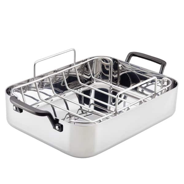 5-PLY, 10.4 qt., Polished, Stainless Steel, Induction, Roasting Pan with Rack