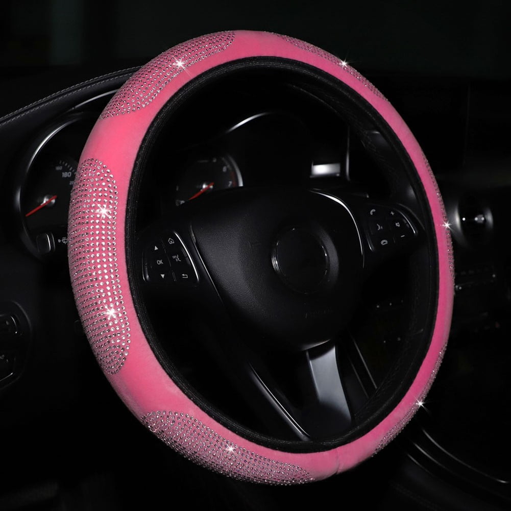15" Car Steering Wheel Cover Leather Bling Rhinestones Protector Accessories